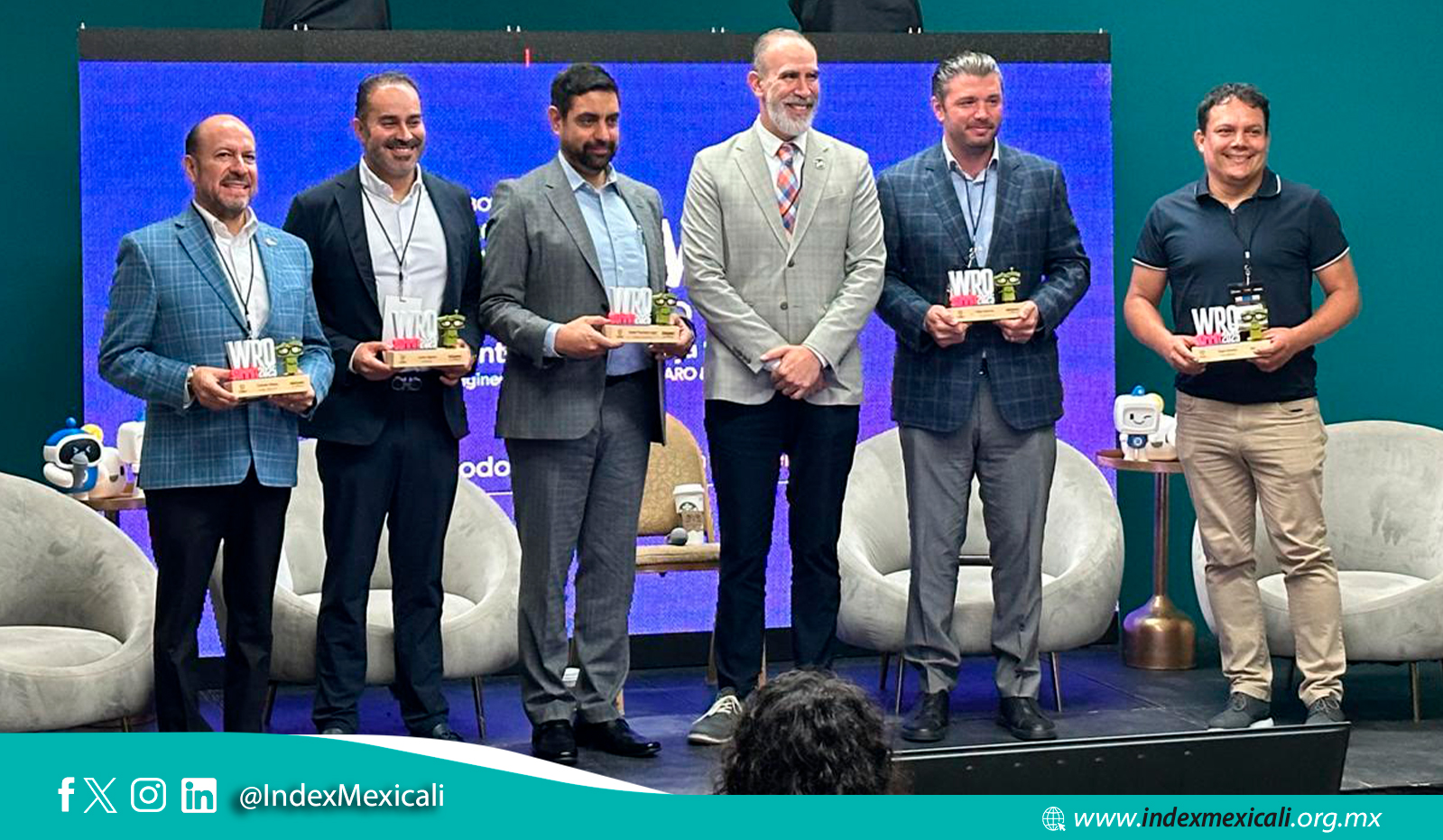 Lic. Salvador Maese Presidente de Index Mexicali estuvo presente en WRO SUMMIT 2025, en el Panel de Industrias: Talento que transforma, acompañado de Fidel Gutierrez CEO G GLOBAL, Carlos Higuera CEO FEEDBKAC y Ángel Sánchez CEO DE ARKUS-NEXUS.